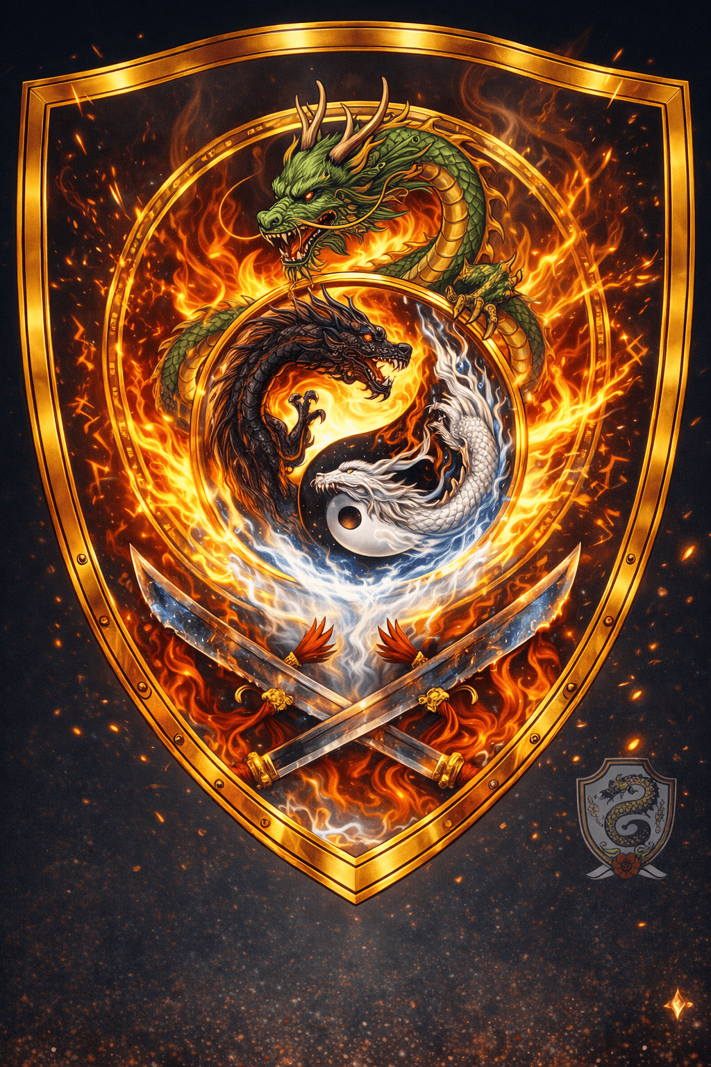 Le Dragon, son arme et son élément.